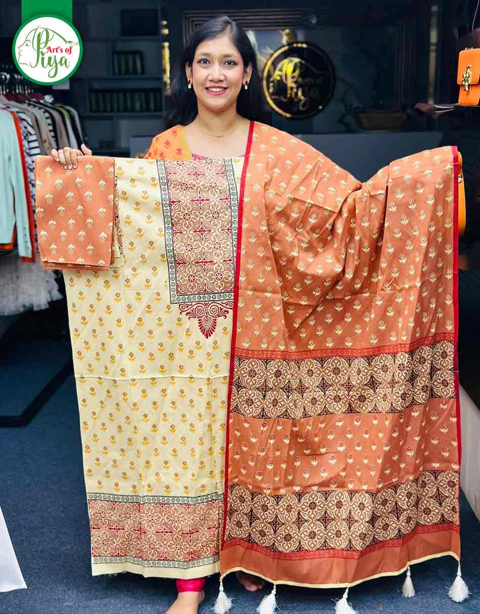 অর্ক সেঞ্চুরি ভয়েলের উপর ব্লক করানো। পুরো ওড়না জুড়ে ট্যাসেল।
