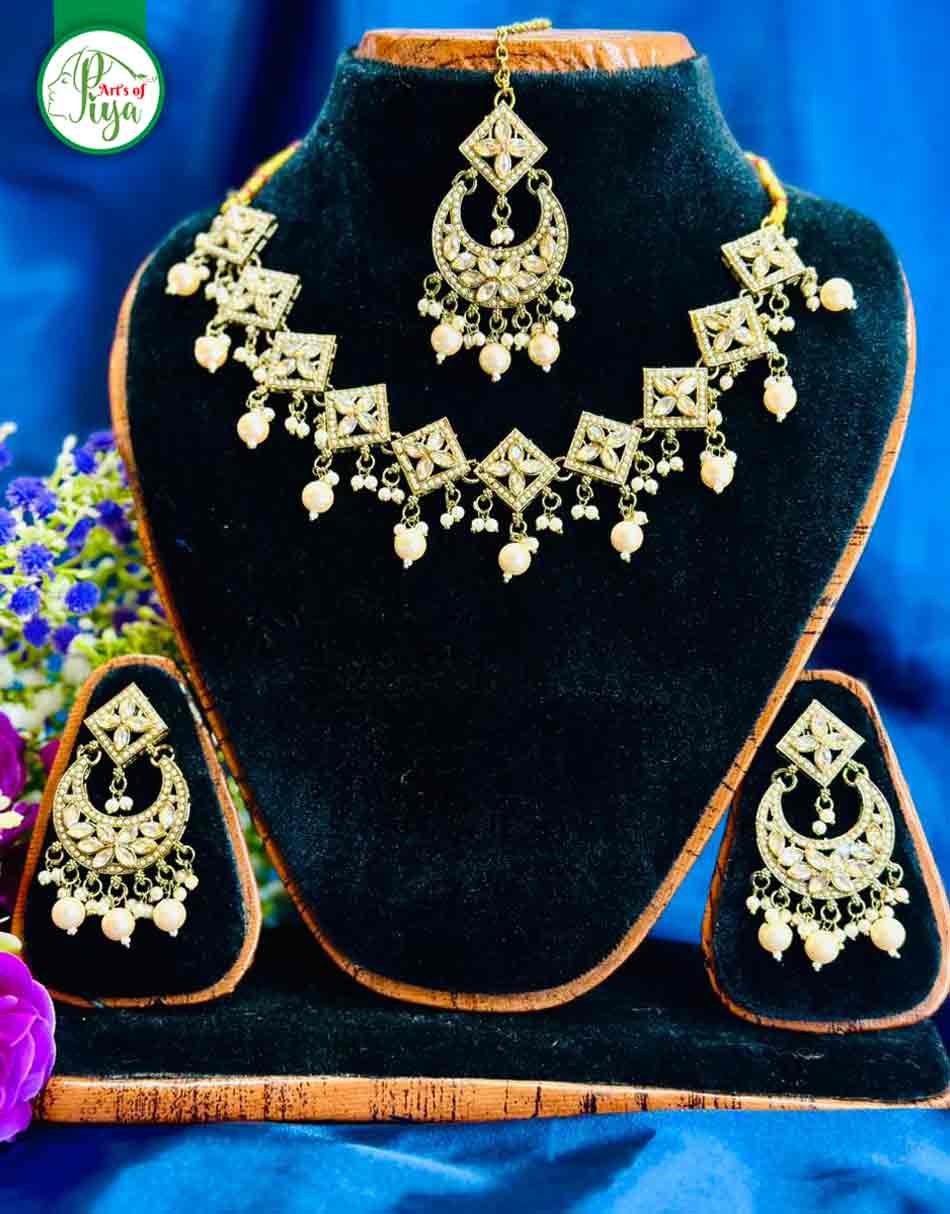 Traditional Kundan Jewelry Set with Pearl Drops – Necklace & Earrings