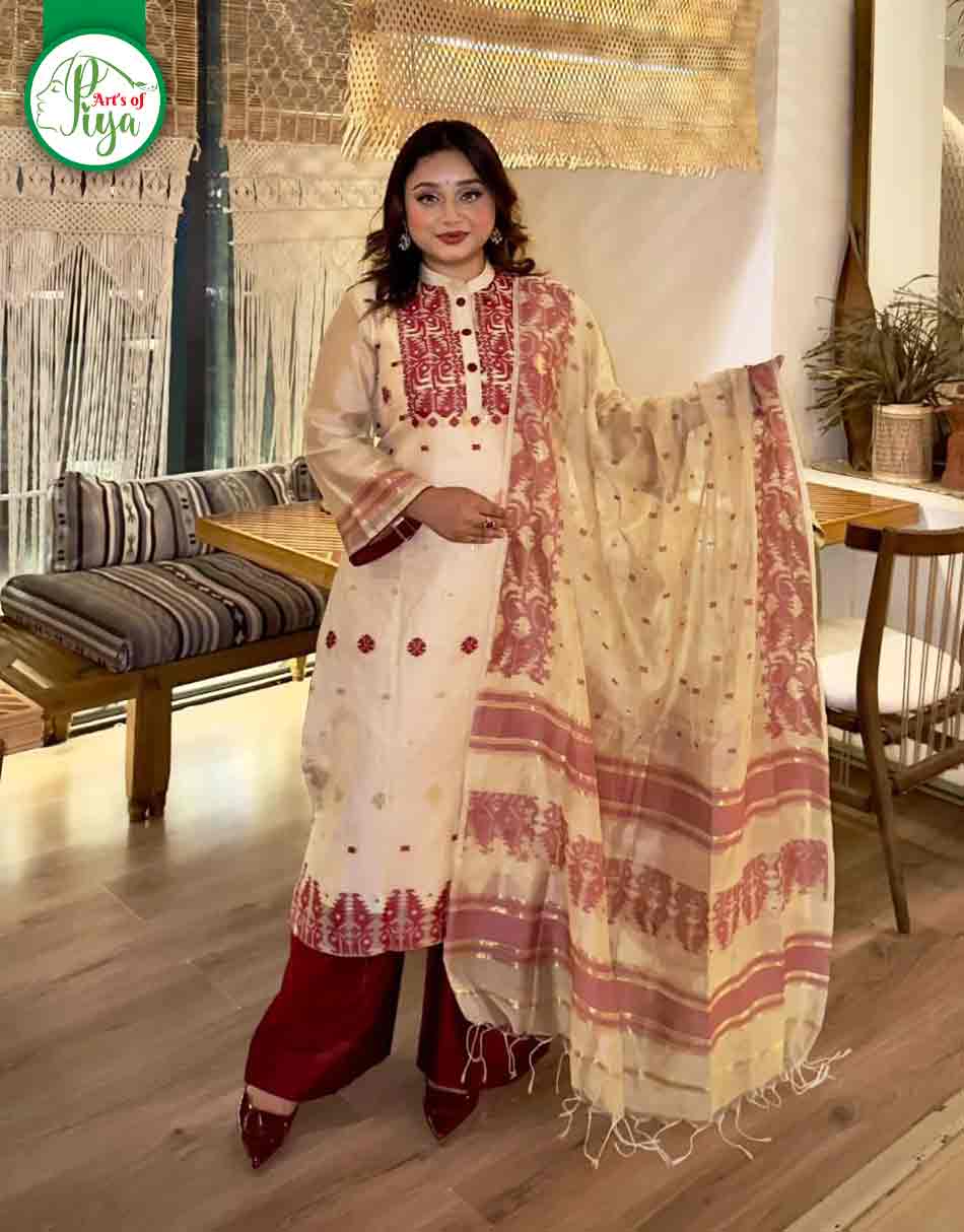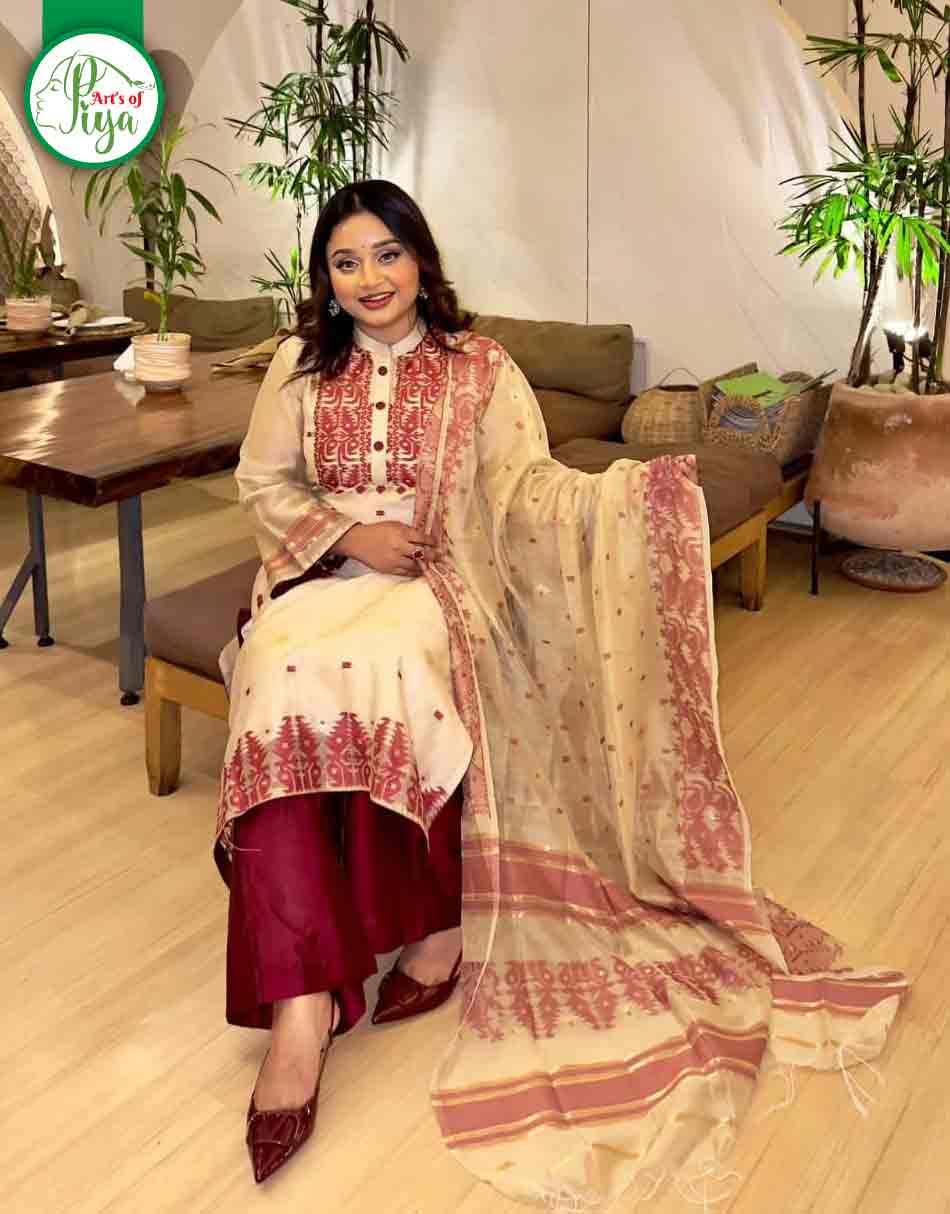 ফুলের রঙ ও সৌন্দর্যকে অনুপ্রেরণা করে তৈরি এই জামদানি, যেখানে প্রতিটি সুতায় লুকিয়ে আছে বাঙালিয়ানা আর শিল্পের নিখুঁত সংমিশ্রণ। এটি একাধারে উৎসবের, ঐতিহ্যের ও রুচির প্রতীক।